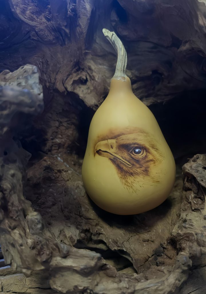 葫芦本色就有古画的基调,在上面临募出名家的国画作品,线条流畅准确、形态栩栩如生、意幸免幽深高远。给人以耳目一新、不媚不俗的感觉。烙画艺术使葫芦由农家瓜果登上了艺术殿堂,成为一种集拙朴自然和高雅精美为一体的传统民间艺术品,具有很高的欣赏价值和收藏价值。