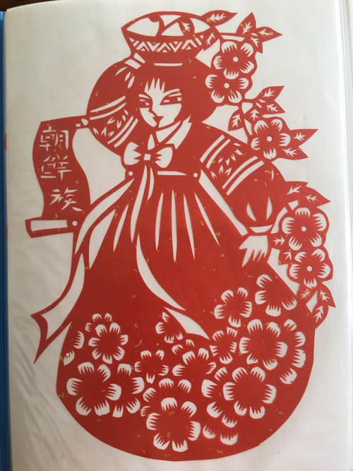 朝鲜族民间剪纸是一门古老的传统民间艺术,其题材丰富,种类繁多,分有炕墙花、天棚花、面缸纸斗花、门花、灯花、窗花、帽花、衣花、鞋花、兜兜花等几十种。剪纸的稿样世代流传,其中有的取材于年画、插图、国画、木刻等等。